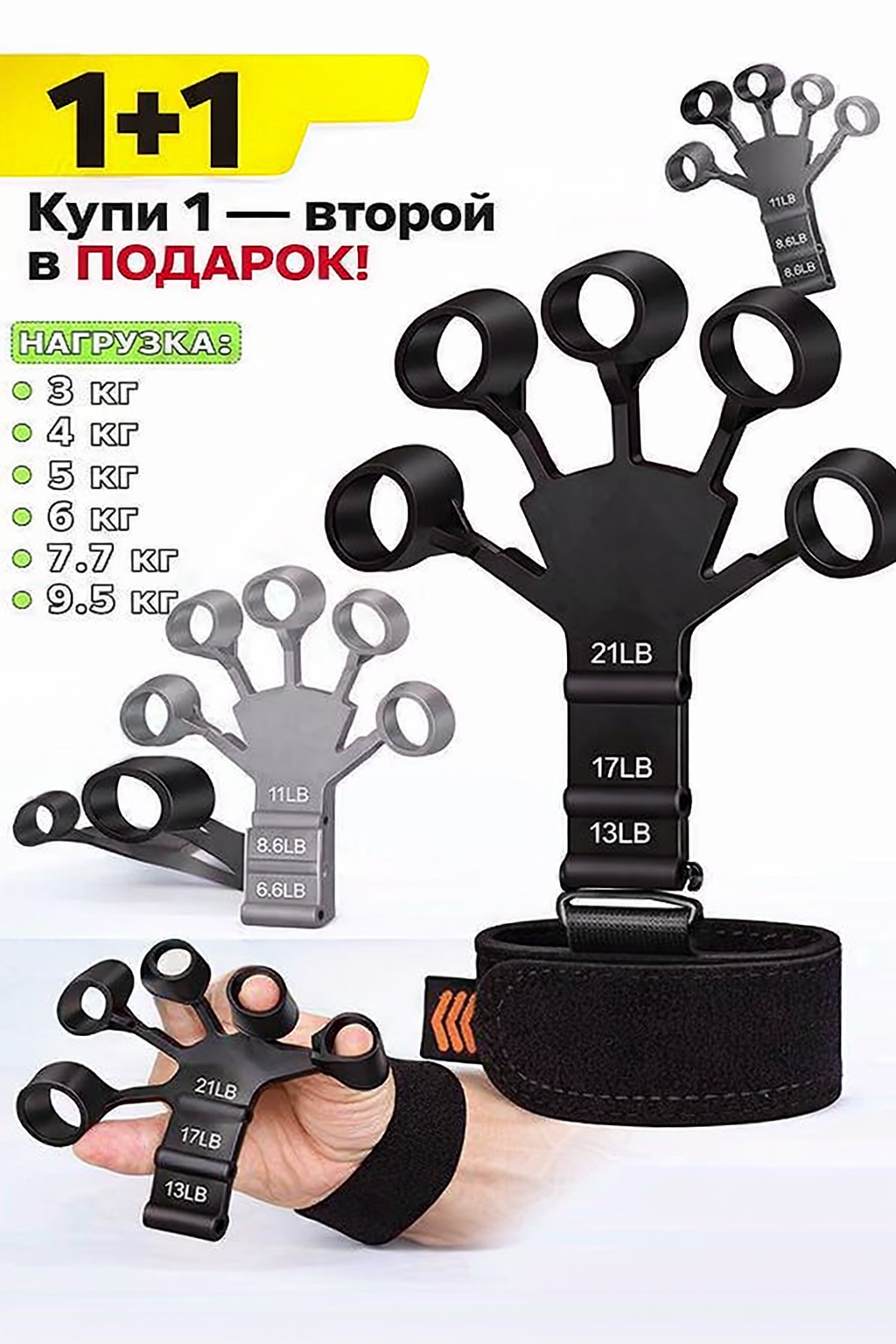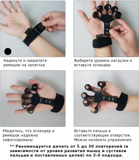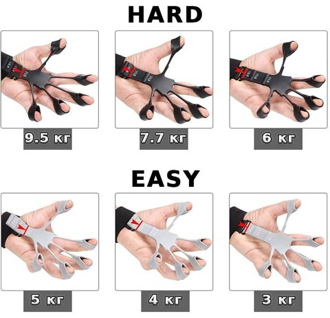 Начать можно с сопротивления 3 кг и плавно развивать руку до максимальной нагрузки в 9.5 кг (21 фунт). Эспандер для пальцев отлично забивает и прокачивает мышцы рук и помогает в короткий срок заметно развить мускулатуру предплечья, сделав руки мощными и привлекательными.