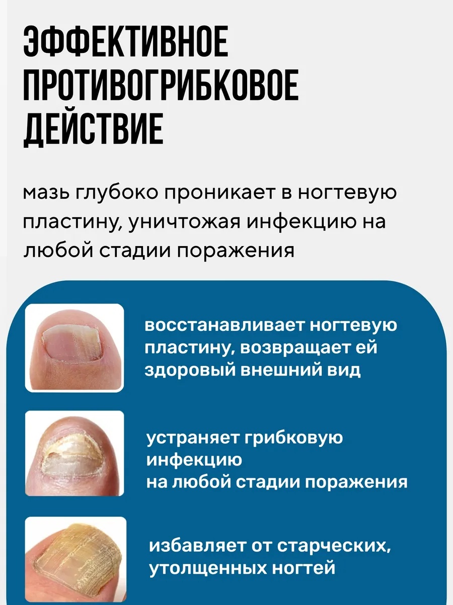После месяца применения ногти стали ровнее и чище. Ушёл зуд и запах. Очень довольна результатом