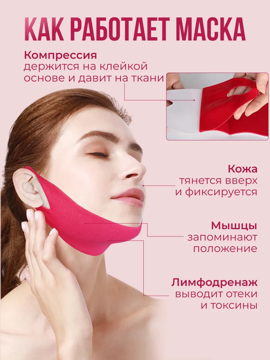 Комбинация гидрогелевого слоя и компрессионного эффекта помогает бороться с отёками, морщинами и дряблостью кожи.
