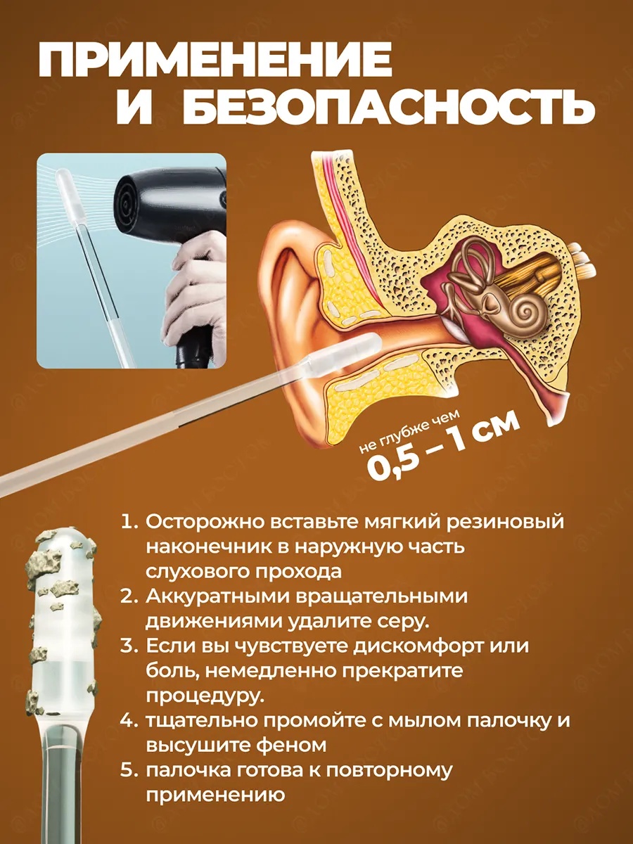 Благодаря мягкому силиконовому наконечнику они аккуратно очищают ушной канал, не повреждая кожу и не вызывая дискомфорта.