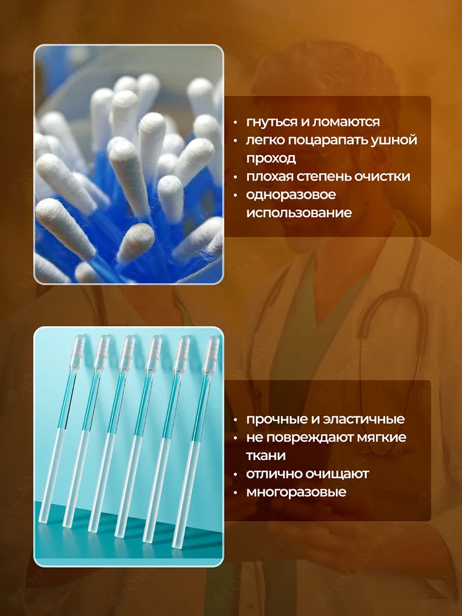Многоразовое использование делает их экономичным и экологичным выбором по сравнению с обычными ватными палочками.
