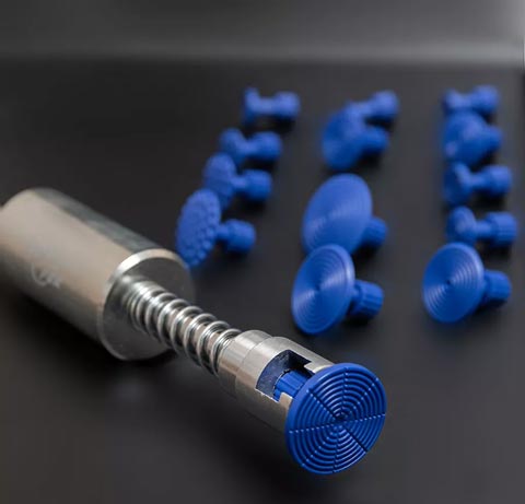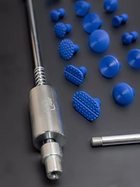 Ремонт производится следующим образом: необходимо хорошо обезжирить нужное место, далее нанести расплавленный клей на присоску и приклеить ее, давать клею застыть. После этого осторожно вытянуть вмятину, используя молоток PDR. Лифтер обладает хорошей точностью при вытягивании. Детейлинг автомобиля проходит быстро и без лишних затруднений.