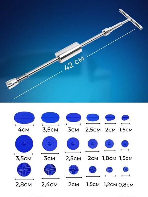 Хороший инструмент, работает без нареканий, огромный плюс что есть большой выбор пластиковых креплений, есть из чего выбрать, что позволяет подобрать на любую вмятину