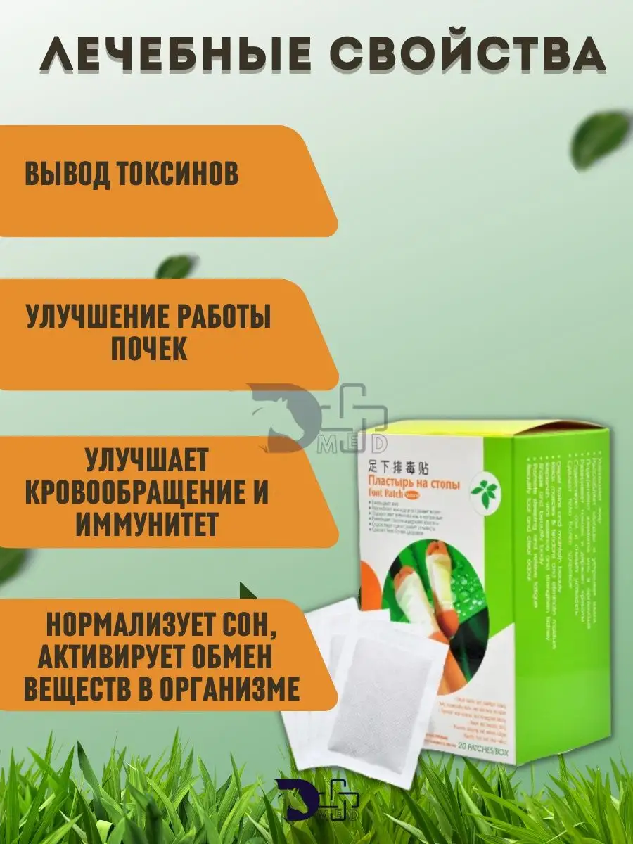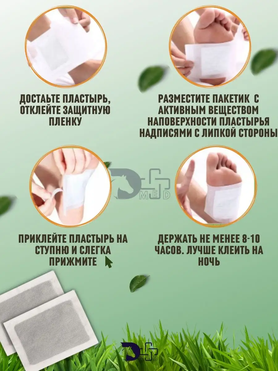 Наш организм выводит шлаки, которые собираются в самой нижней части тела, на нижней поверхности стоп. Растительные и другие природные компоненты, которые расположены на пластыре, согревают стопы и открывают акупунктурные точки. Таким образом происходит мягкое выведение токсинов из организма.