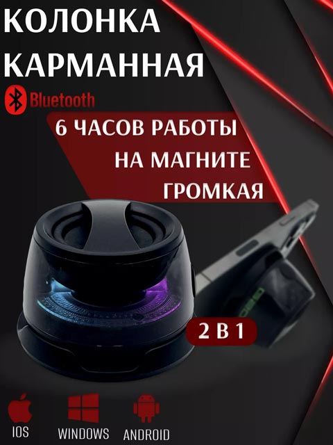 Магнитная мини колонка - инновационная конструкция с магнитным всасыванием позволяет этой 3-ваттной колонке воспроизводить мощный звук в компактном корпусе, а технология Bluetooth 5.3 обеспечивает кристально чистое звучание мелодий.
