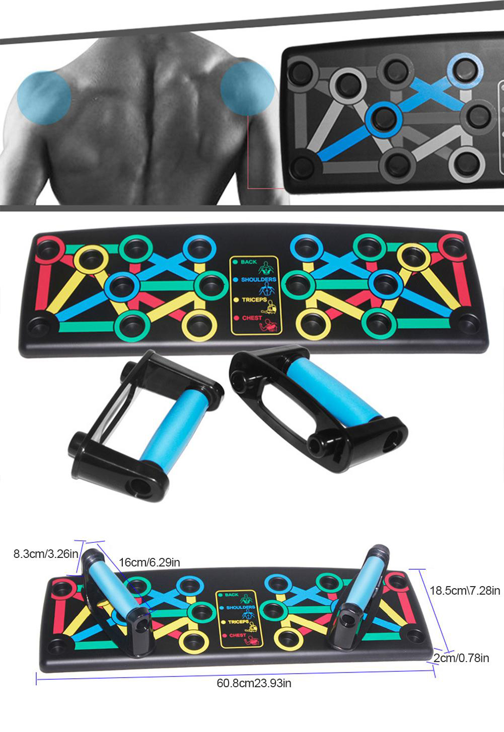 Различные цвета сочетают в себе тренировки разных частей тела: синие части тренируют грудь, зеленые части тренируют трицепсы, красная часть – это упражнение на плече. После использования он складывается и блокируется и сразу же превращается в компактный чемодан, который может храниться в любом уголке дома. После использования он складывается и блокируется и сразу же превращается в компактный чемодан, который может храниться в любом уголке дома.