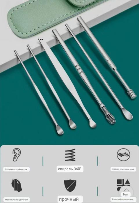 Инструменты для чистки ушей медицинский изготовлен из высококачественной стали и подходит для любых видов стерилизации. Используется для чистки ушей как в домашних, так и в профессиональных условиях.