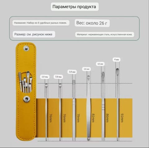 Все ушные палочки металлические полностью отполированы, вся поверхность гладкая и округлая, чтобы предотвратить любое раздражение или царапины. Инструменты для ушей чистка удобно взять с собой в дорогу или в путешествие.