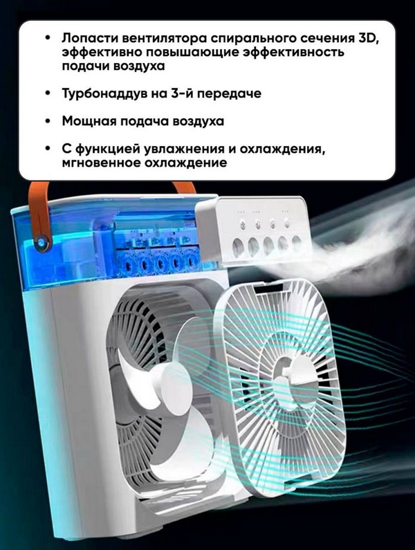 Портативный мини кондиционер – это настоящее спасение в жаркие дни! Персональный охлаждающий мини-вентилятор с функцией увлажнения - это нужная бытовая техника для вентиляции квартиры, дачи, автомобиля или офисного помещения.