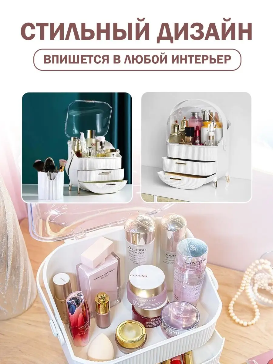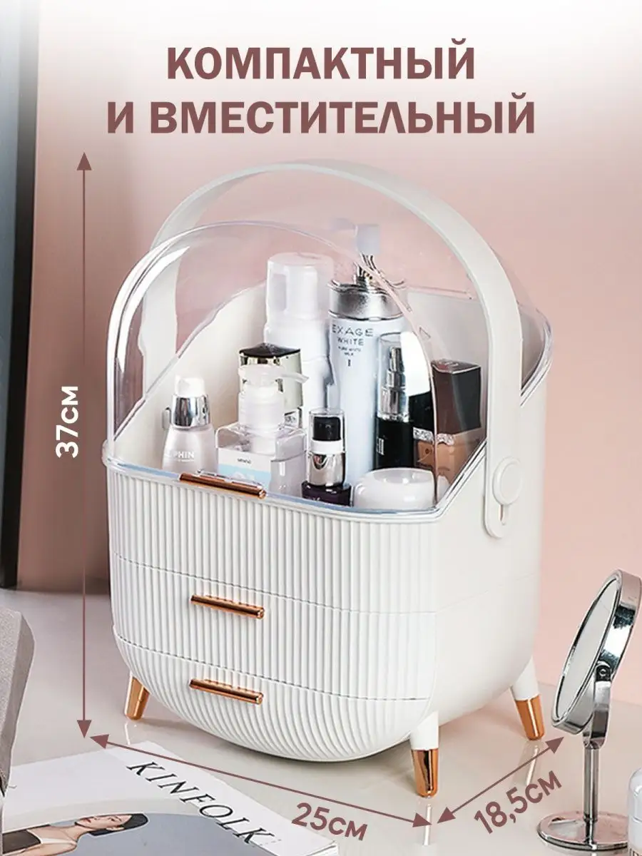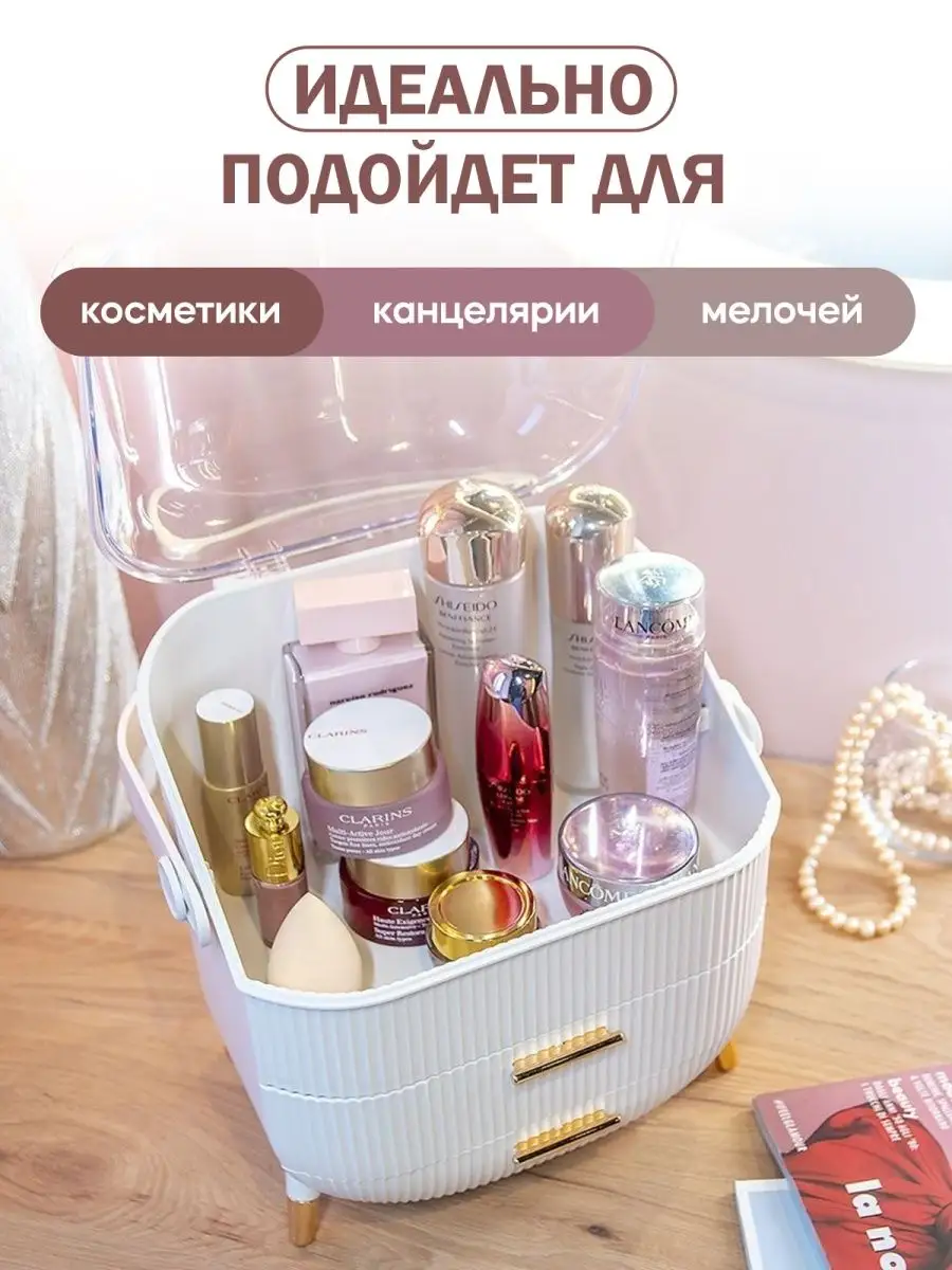 Органайзер большой, вместительный. Запах пластика отсутствует. Теперь вся косметика жены будет в одном месте.