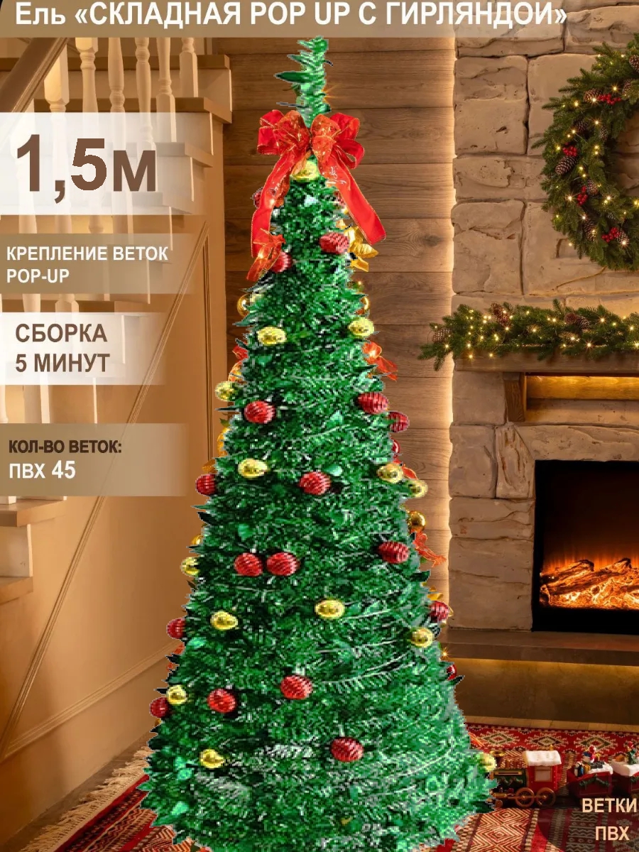 Создайте незабываемую новогоднюю атмосферу с помощью нашей складной елки "Лентяйка". Она идеально подходит для тех, кто хочет наслаждаться праздниками без лишних хлопот. Легкая в установке и транспортировке, эта елка станет главным украшением вашего дома. Ветви придают ей натуральный вид, а компактная конструкция позволяет разместить елку даже в небольших комнатах.