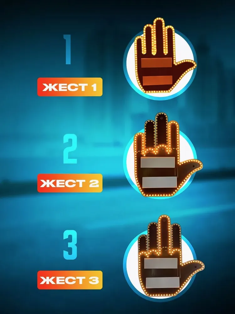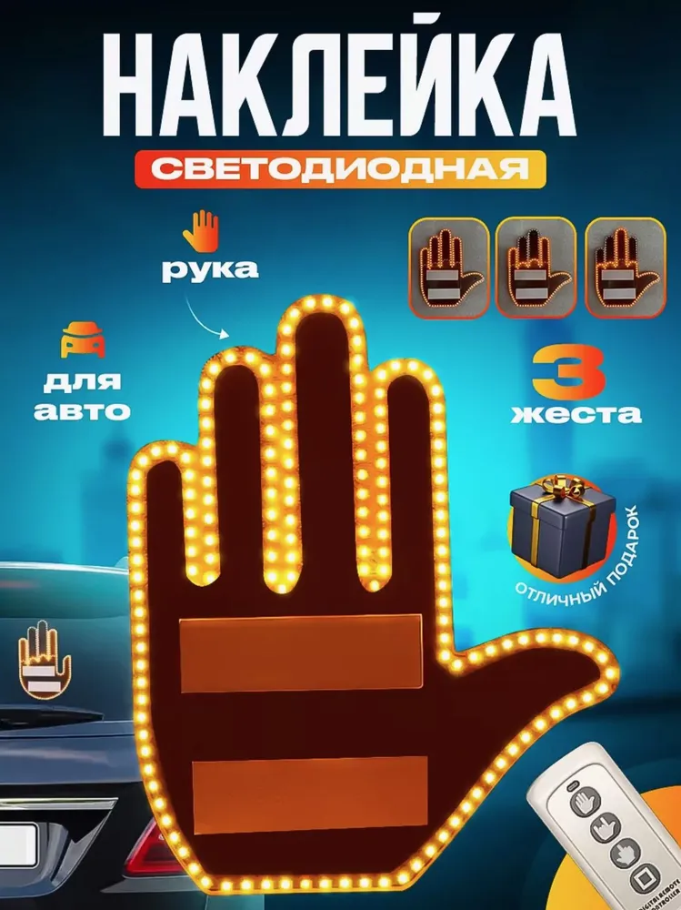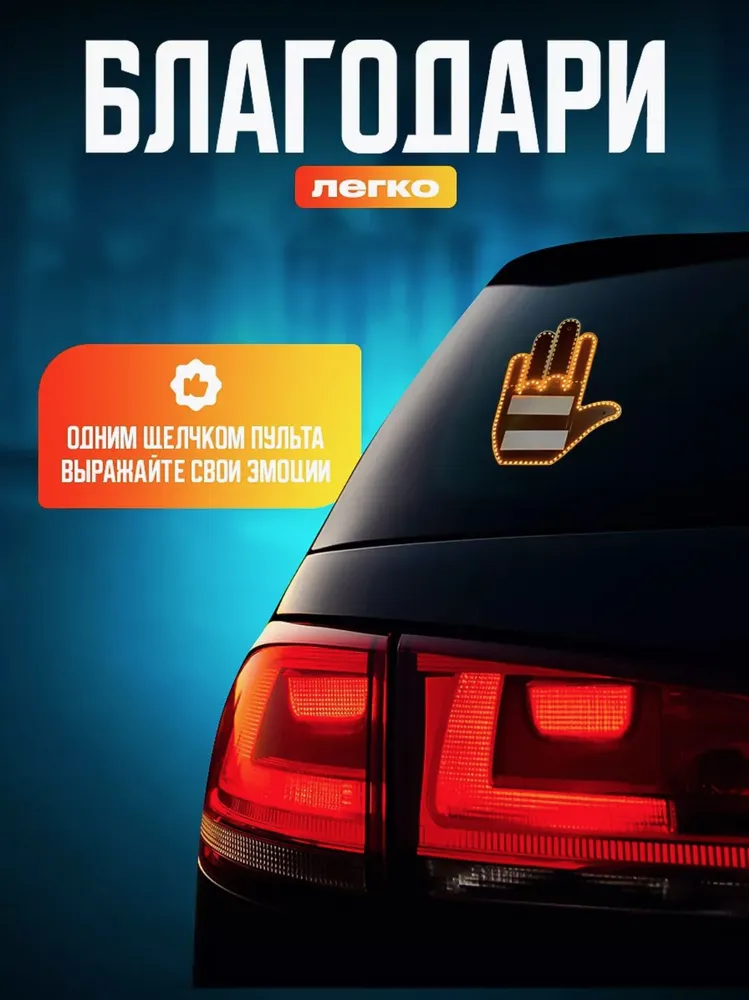 Светодиодная наклейка «Ладошка» — это оригинальный автоаксессуар, который делает ваше авто более заметным и выражает эмоции на дороге. Устройство имеет три световых сигнала: «спасибо», «нейтрально» и «возмущение» — всё управляется с пульта, который удобно крепится рядом с рулём.
