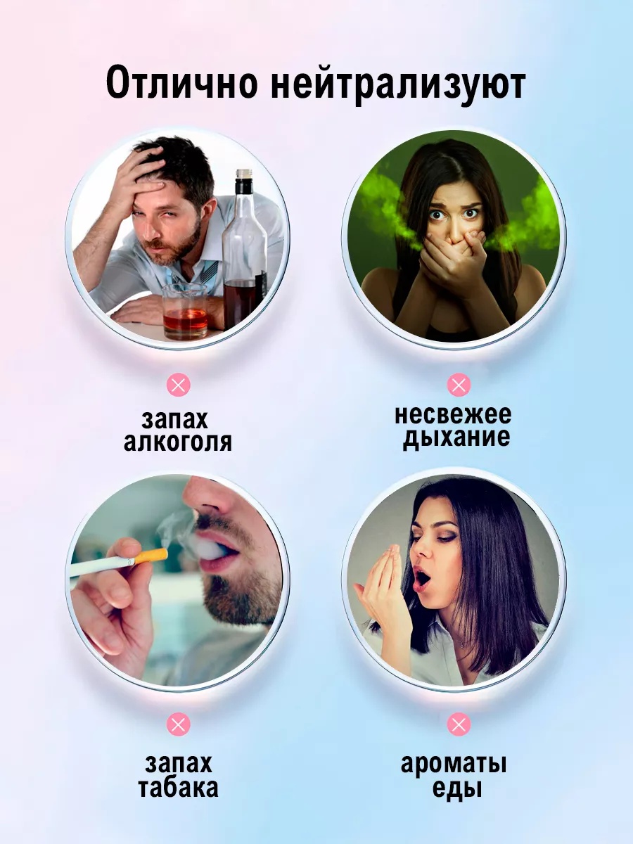 Они мгновенно нейтрализуют запахи табака, алкоголя и пищи, даря уверенность в течение всего дня. Компактный формат позволяет носить их в сумке или кармане, использовать на работе, в дороге или после еды.
