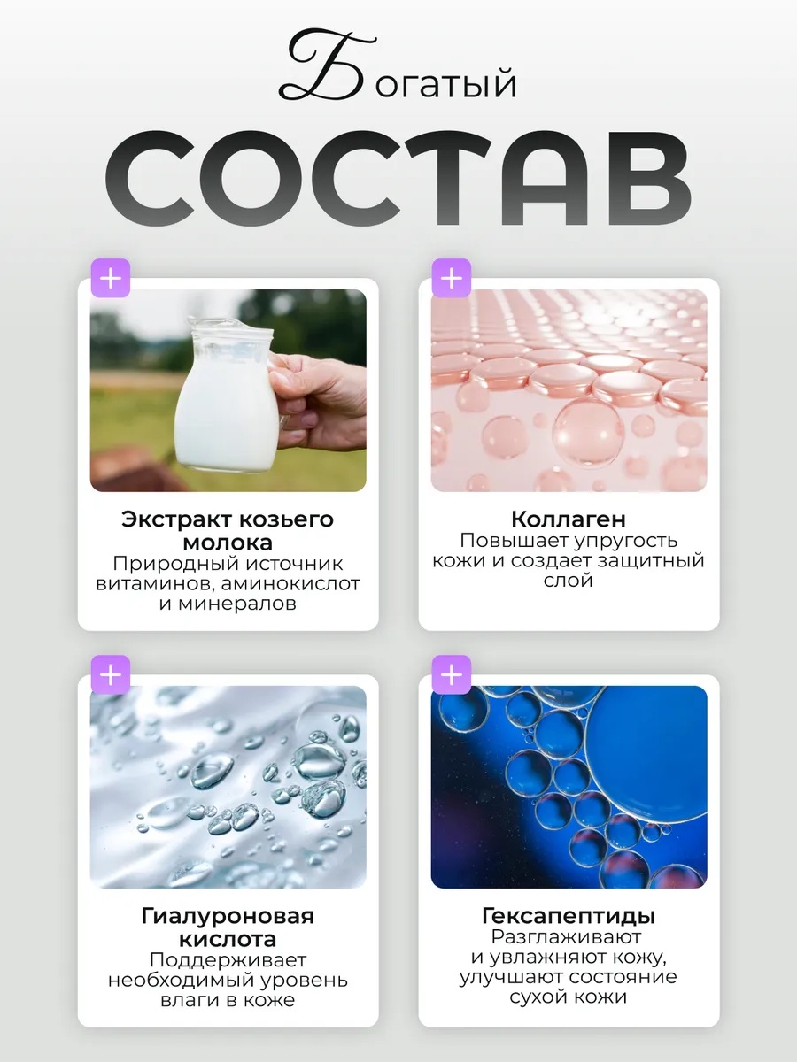 Маска для шеи с экстрактом козьего молока – это эффективное средство для борьбы с морщинами и возрастными изменениями в области шеи и декольте. Она интенсивно питает, подтягивает кожу и устраняет заломы, возвращая ей гладкость и упругость.