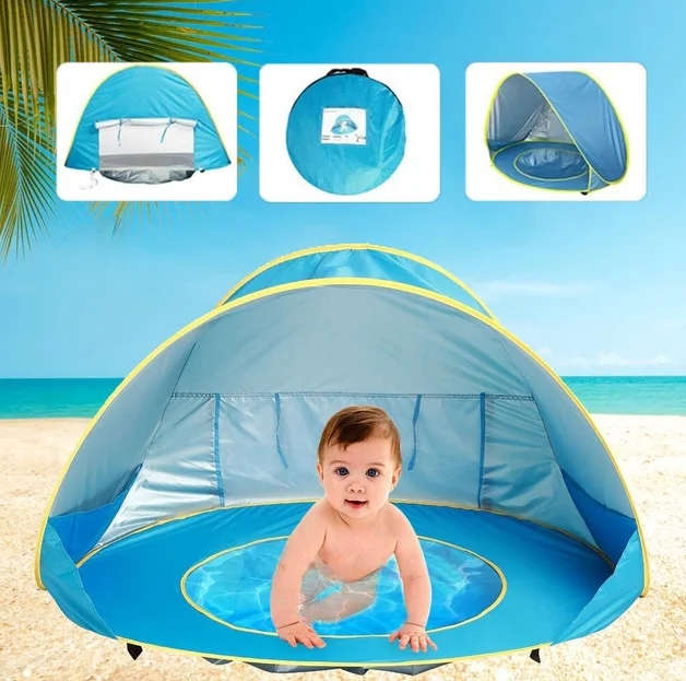Детская палатка с бассейном — идеальное решение для летнего отдыха с малышом! Уникальная конструкция совмещает в себе функцию тента и небольшого бассейна, в котором ребенок сможет безопасно плескаться даже в самый жаркий день.