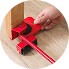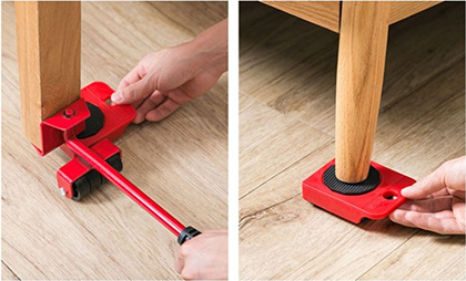 С помощью рычага поднимите нужный вам груз, а затем подставьте роликовые платформы. Благодаря такой системе вы с легкостью сможете передвигать шкафы и столы, не прибегая к услугам грузчиков и не повреждая напольное покрытие.