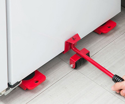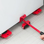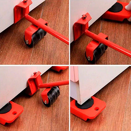 Помогает экономить силы и защищает полы!Набор включает в себя специальный рычаг и 4 небольшие платформы на роликах, он очень простой в эксплуатации. Не понадобятся ни специальные навыки, ни значительные физические усилия.