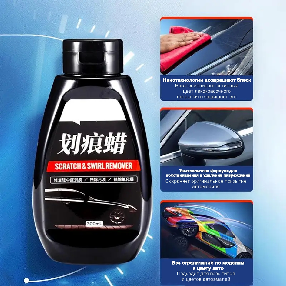 Scratch & Swirl Remover — профессиональное средство для восстановления блеска и удаления царапин на автомобиле без перекраски. Эффективно справляется с потертостями от веток, солнечными кругами, окислением, грязью и микротрещинами. Идеально подходит для освежения внешнего вида кузова перед продажей или после зимы. Возвращает авто первоначальный вид всего за 5 минут работы.