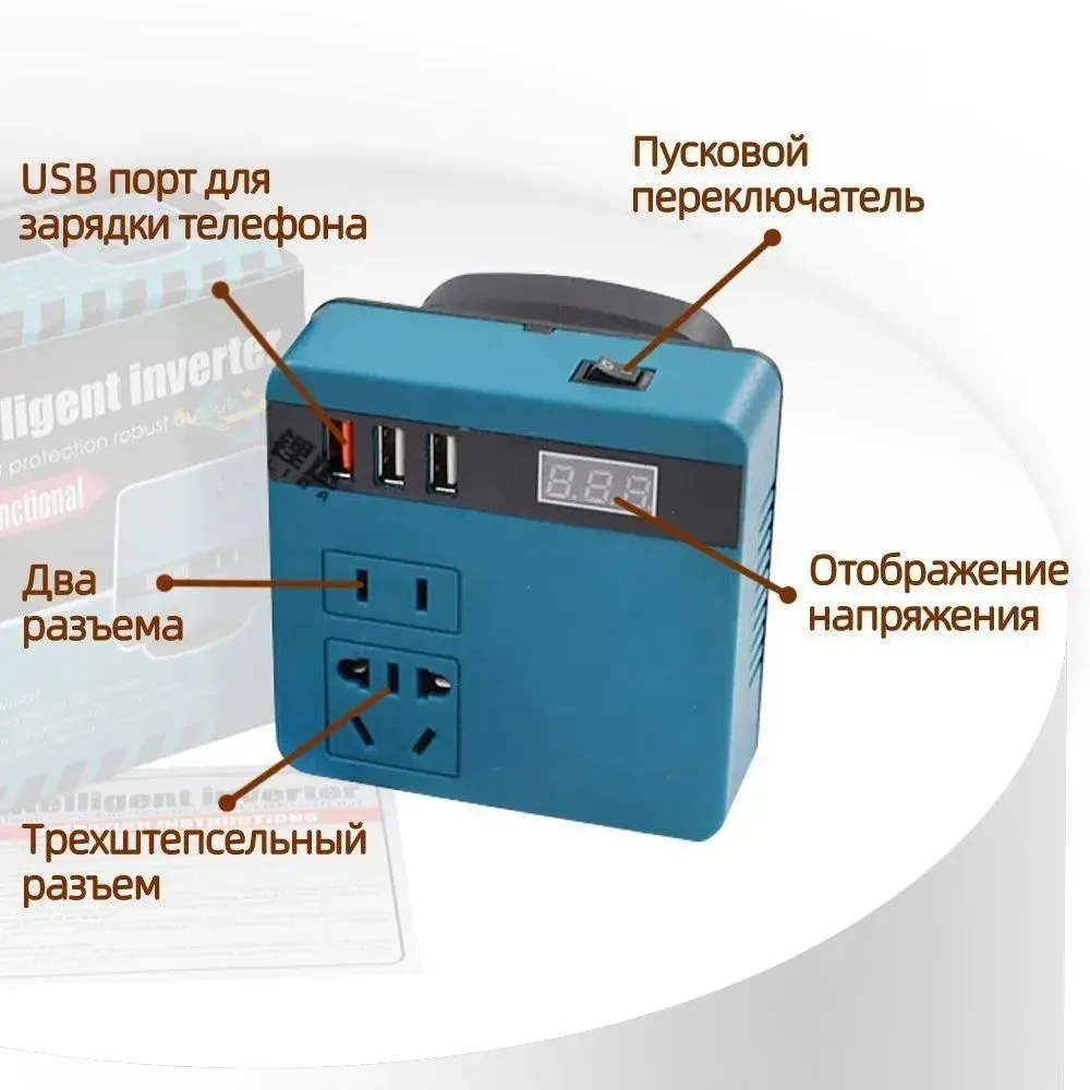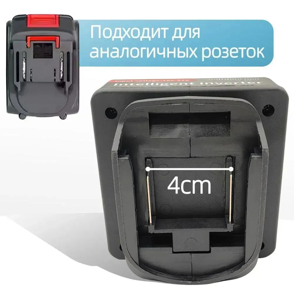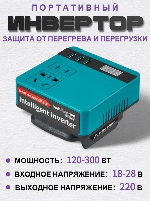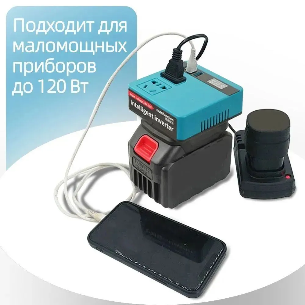 Часто работаю на объектах, где ещё нет электричества. Этот инвертор реально спасает! Лампу и зарядку телефона тянет без проблем. С батареями Makita работает идеально.