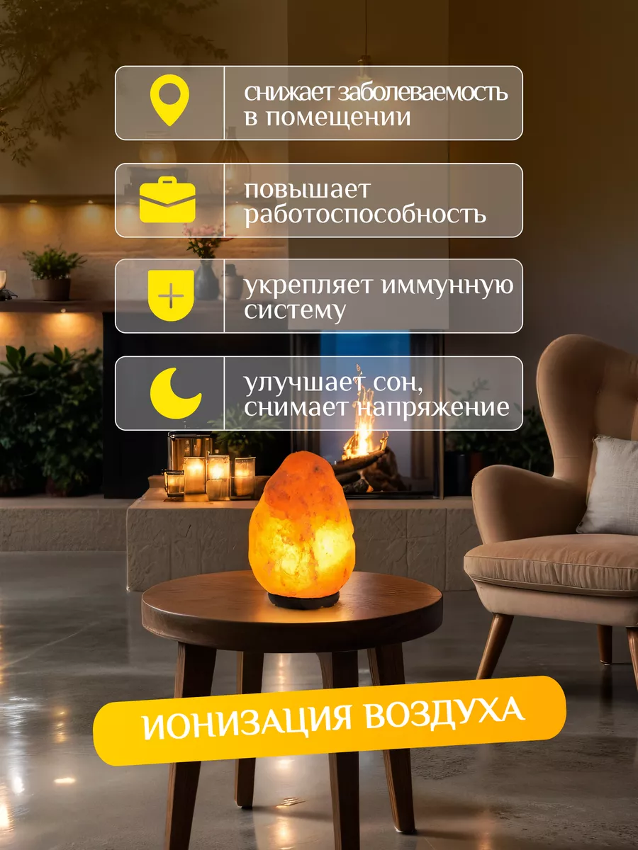 Эта соляная лампа — настоящая находка для моей спальни! Свет настолько мягкий и уютный, что я стала засыпать быстрее, а воздух кажется чище. Очень довольна покупкой!