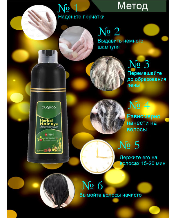 Нанесите на волосы на 15-20 минут, затем смойте водой. Используйте один раз в месяц. Одна упаковка шампуня 500 мл, хватает на год.