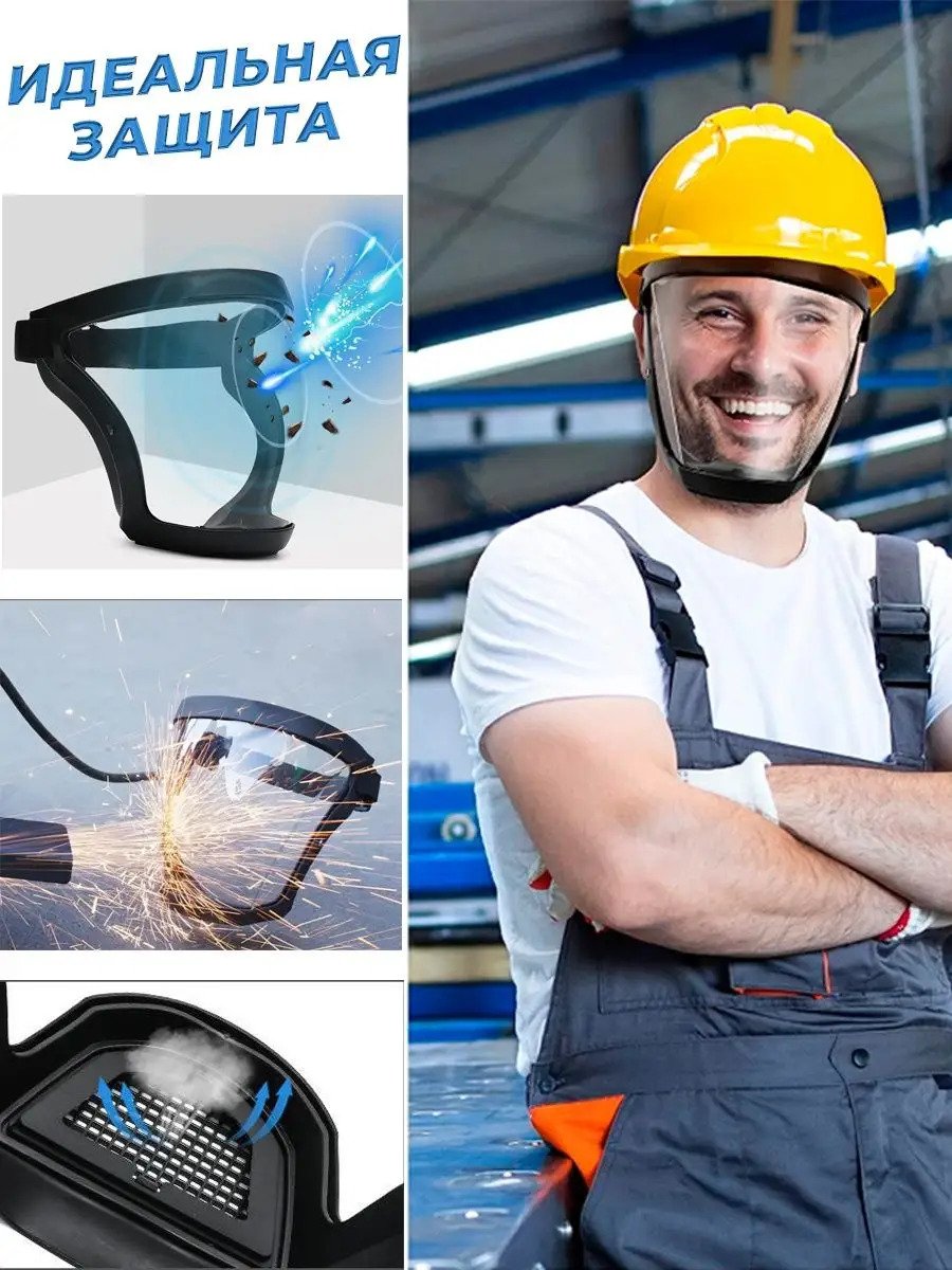 Прозрачная защитная лицевая маска - средство индивидуальной защиты, используется для предотвращения или уменьшения воздействия на лицо человека разного рода физических факторов таких как брызг дождя, пыли, снега. А также металлической стружки или опилок при проведении строительных работ с болгаркой или ремонта в доме, на даче или в квартире.