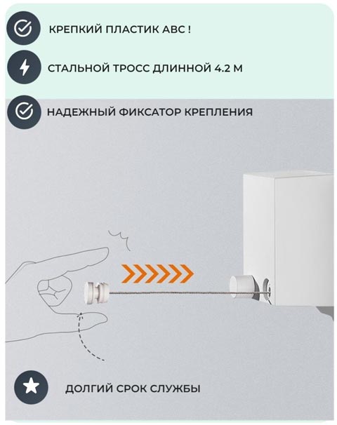 Крепкий трос из коррозиестойкой стали в роли бельевой веревки удерживает вес мокрого одеяла! Действительно очень удобное приспособление.
