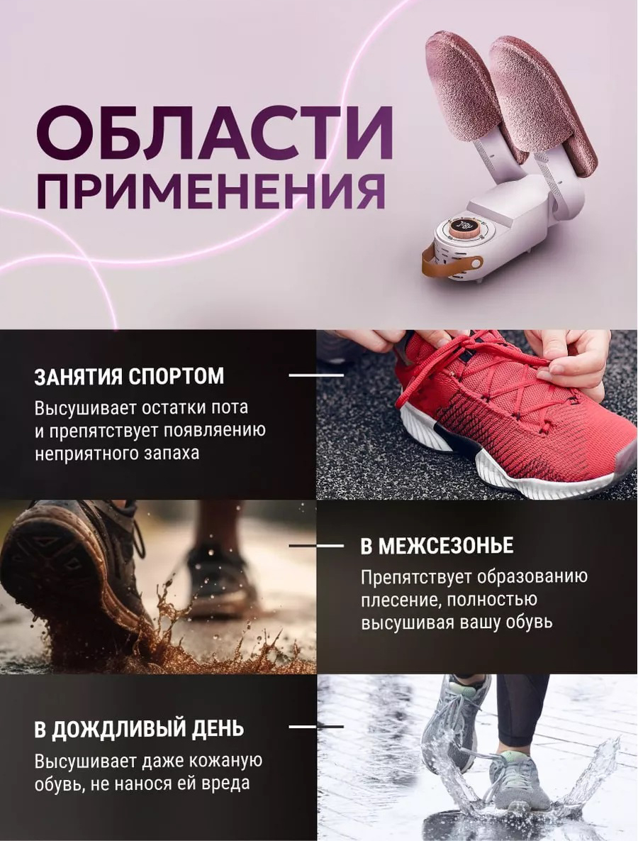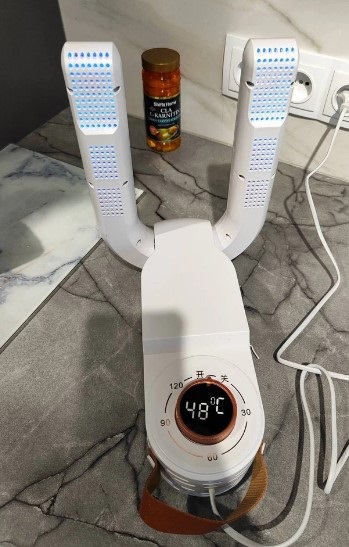 10 из 10 сушилка с таймером, подойдёт не только для обуви но и перчаток. Для семьи с детьми незаменимая вещь. Однозначно рекомендую. Благодарю продавца.