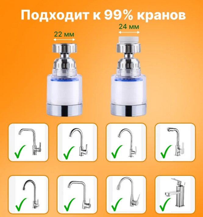 Этот универсальный фильтр для воды — отличное решение для тех, кто заботится о качестве жизни и здоровье семьи. Он просто устанавливается вместо стандартного аэратора, не требует специнструмента, подходит для большинства кухонных и ванных кранов, а также для душа. Фильтр задерживает ржавчину, песок, известь, органику и другие примеси, делая воду безопасной для питья, готовки и ухода за кожей.