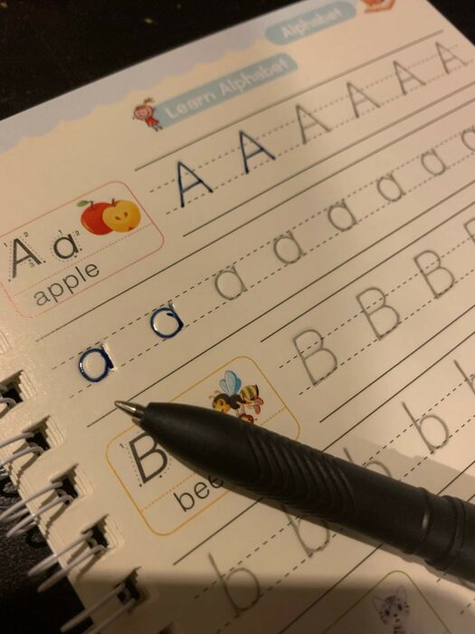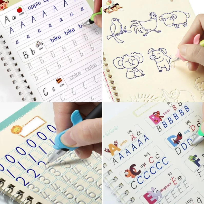 Тренирует навыки письма и позволяет выработать уникальный и неповторимый почерк. Научите детей правильной каллиграфии с ранних лет. В комплекте идет 4 тетради: алфавит, цифры, картинки, математика Содержание: 4 тетради по 10 страниц + ручка с исчезающими чернилами и силиконовый держатель