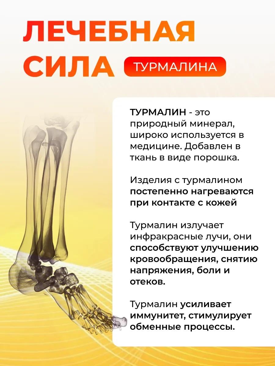Оздоровительные носки с турмалином — это инновационный способ заботы о ногах и общем самочувствии. В ткань вплетены турмалиновые нити и магнитные частицы, которые активируются от тепла тела, создавая мягкий прогревающий и терапевтический эффект.