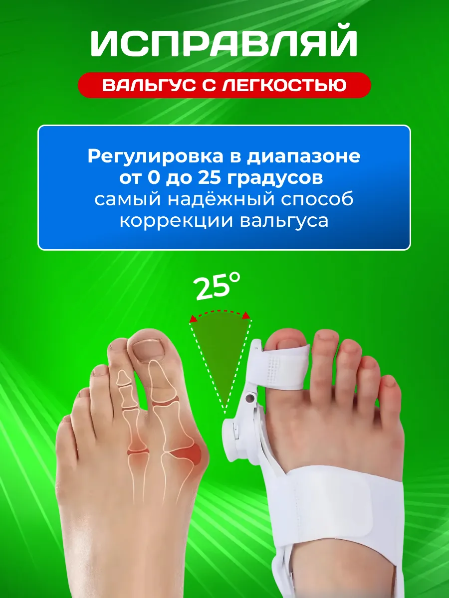 Вальгусный корректор большого пальца с регулировкой угла – это инновационное ортопедическое решение, которое помогает избавиться от дискомфорта и боли при ходьбе. Разработанный ведущими ортопедами Европы, этот корректор гарантирует плавное и безболезненное выравнивание пальца.