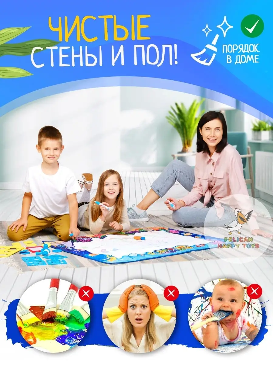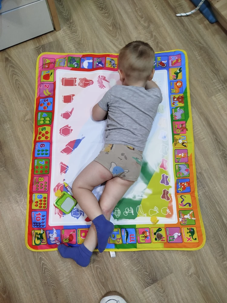 Хотите занять ребенка интересной и развивающей игрой, при этом сохранив дом чистым? Детский коврик для рисования водой – идеальное решение! Этот уникальный многоразовый коврик превращает процесс рисования в волшебное приключение: просто залейте воду в специальные маркеры и создавайте красочные изображения. Через 15-20 минут они исчезают, и можно начинать заново!