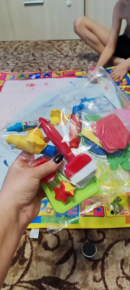 Отличный набор! У нас теперь целая игровая станция: трафареты, печати, кисточки. Малыш в восторге, да и мне спокойно – никакой грязи в доме.