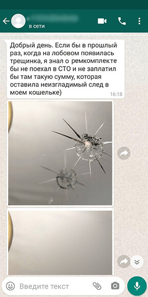 Мой муж очень расстроился, когда увидел, что я на своей машинке поймала камень в лобовое стекло. В поисках информации сколько это стоит в мастерских, наткнулась на этот сайт. Прочитала про данный ремкомплект, увидела скидку-предложила мужу попробовать, все равно дешевле чем пользоваться услугами "специалистов". Сделали как в инструкции на видео - и вуаля, все готово, осталось маленькое пятнышко. Спасибо за сэкономленные деньги!