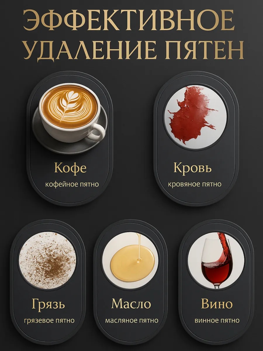 Салфетки для удаления пятен — это экспресс-средство, которое всегда под рукой. Они эффективно удаляют сложные загрязнения: кофе, вино, масло, кровь или грязь. Достаточно приложить салфетку на пару минут, протереть круговыми движениями и дать ткани высохнуть.